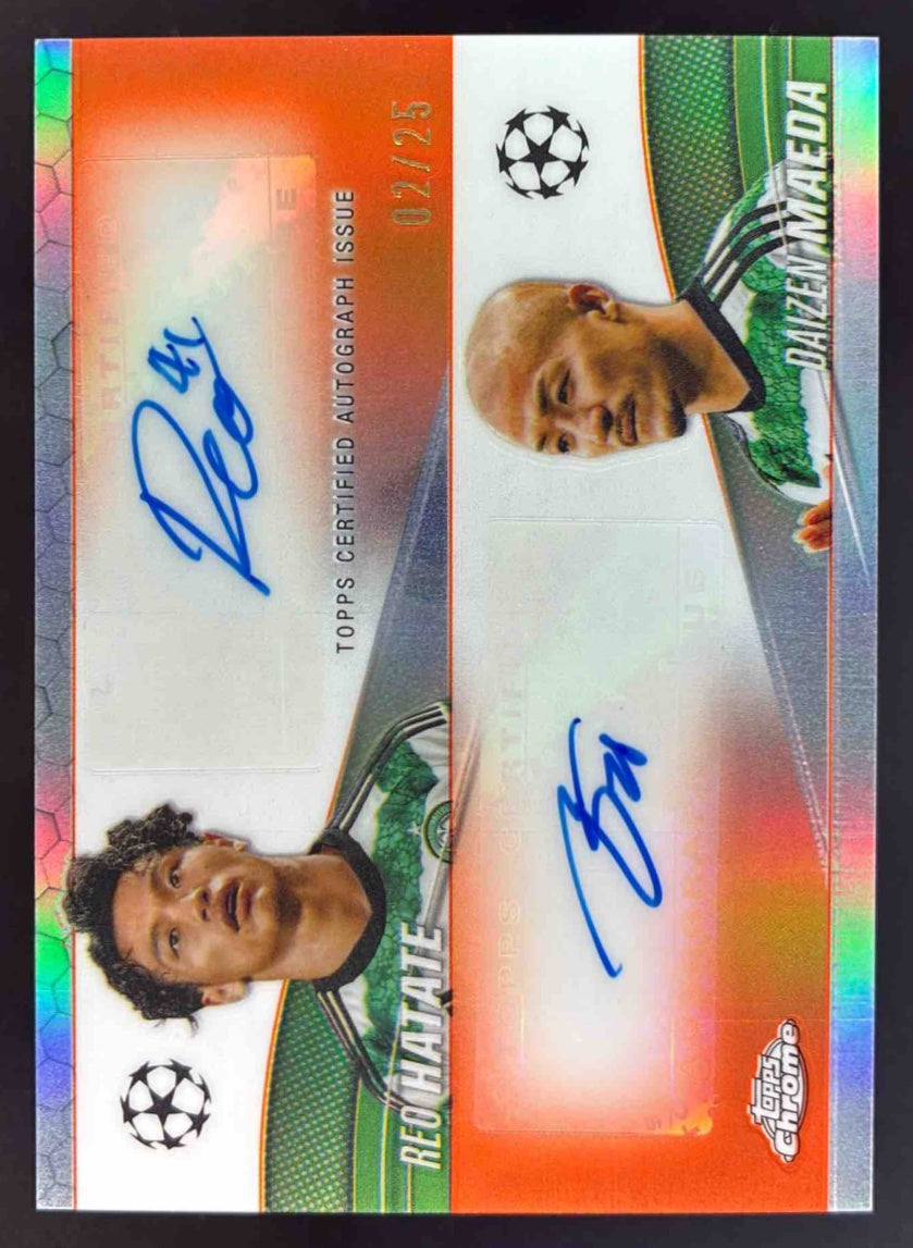 2023 Topps Chrome UEFA Dual Auto Orange Refractor Daizen Maeda Reo Hatate /25