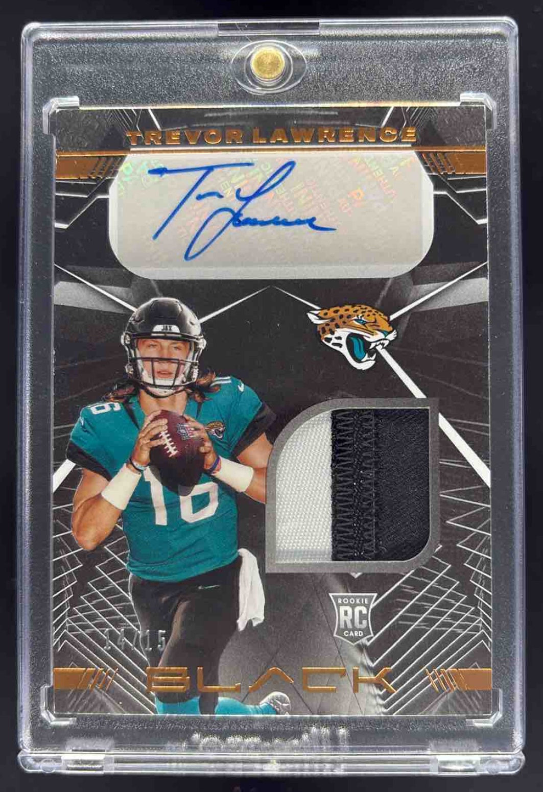 2021 Panini Black Rookie Materials Copper #RSM-TL Trevor Lawrence RC Auto /15
