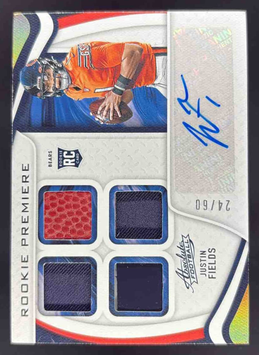 2021 Absolute Rookie Premiere Materials Quad #208 Justin Fields RC Auto /60
