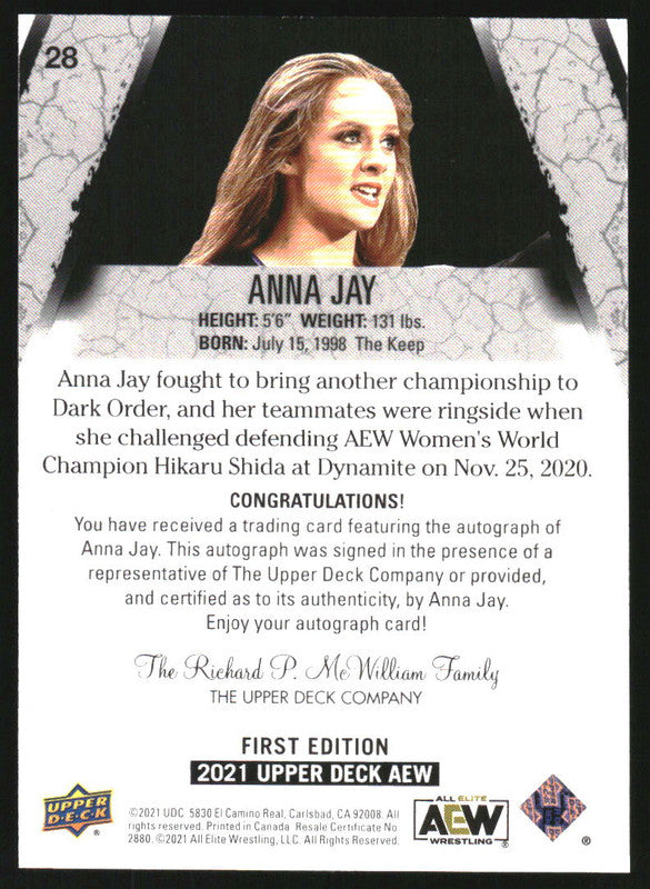 2021 Upper Deck AEW Autographs #28 Anna Jay Auto