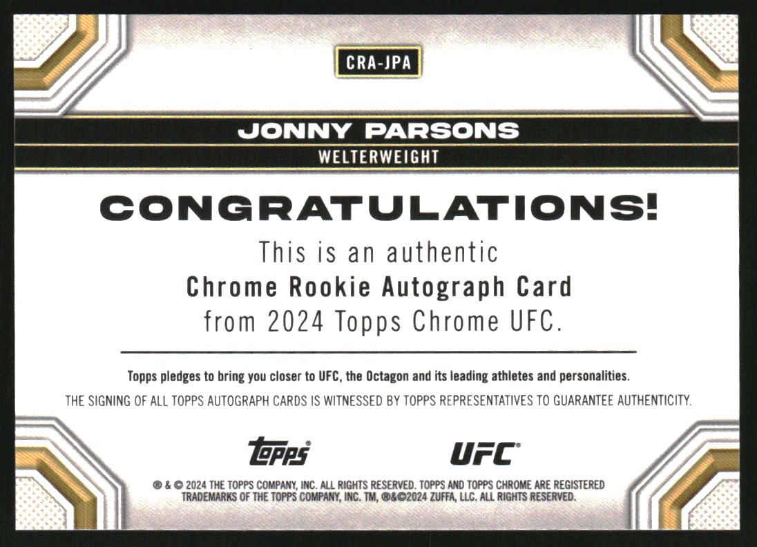 2024 Topps Chrome UFC Chrome Rookie Auto Gold Refractors Jonny Parsons RC /50