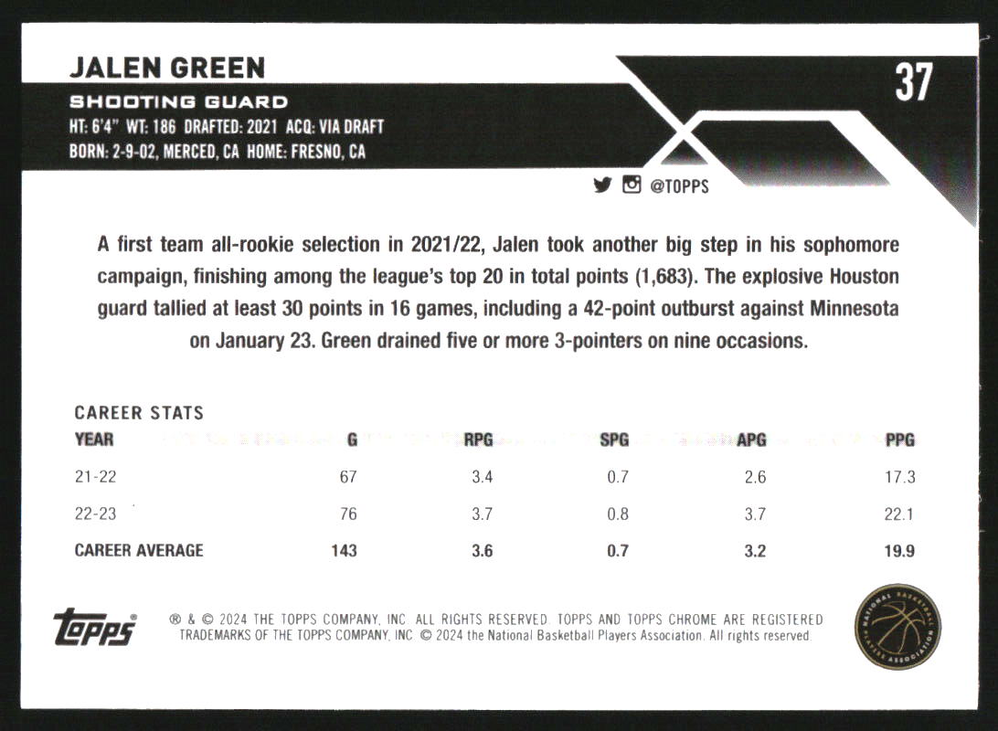 2023-24 Topps Chrome Sapphire Purple Refractors #37 Jalen Green /10
