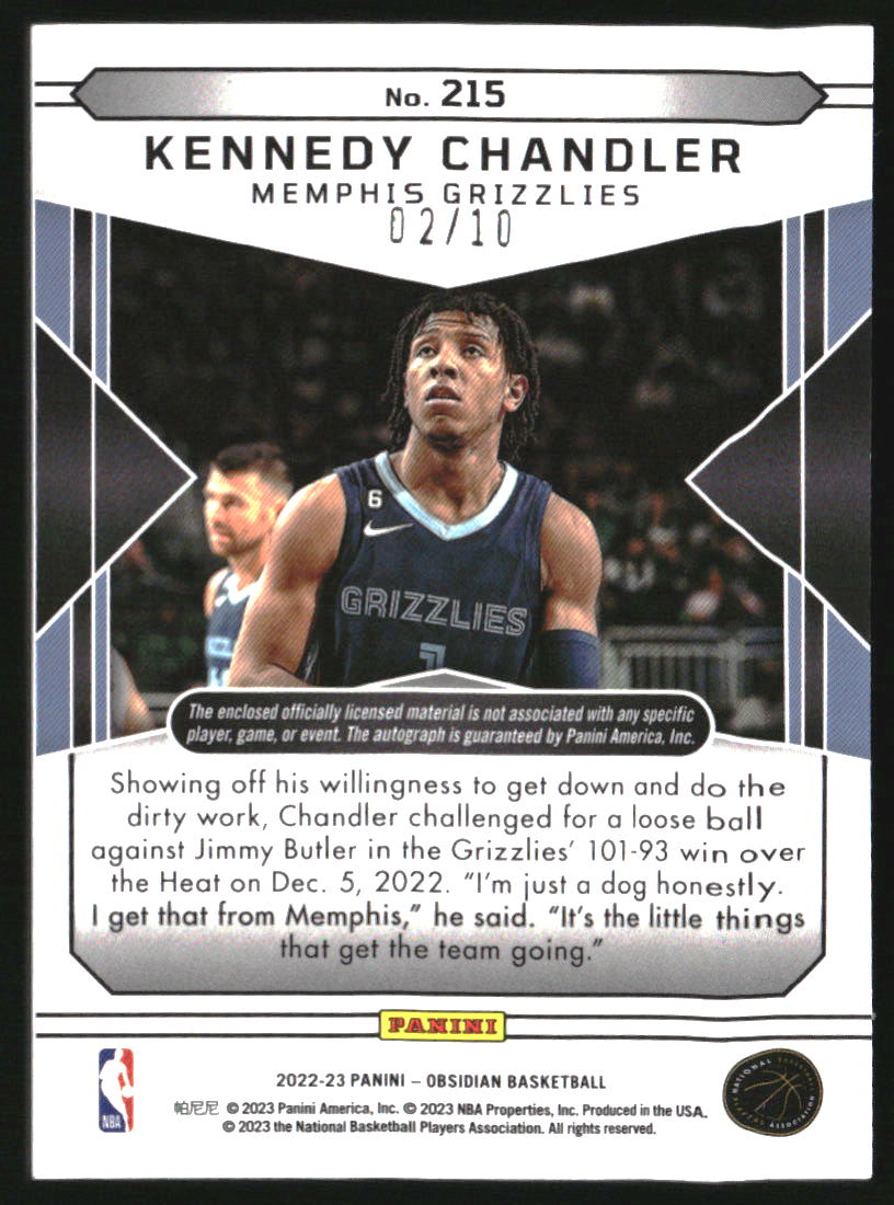 2022-23 Panini Obsidian Electric Etch Yellow Flood Kennedy Chandler RC Auto /10