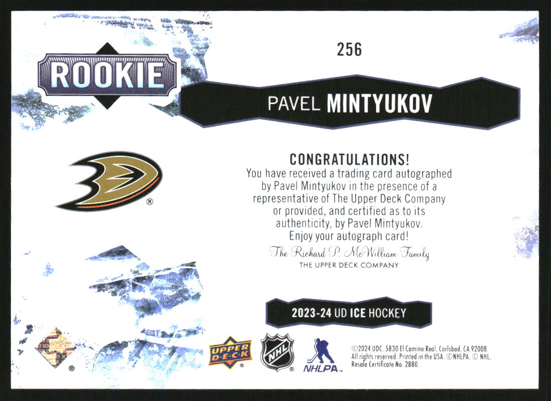 2023-24 Upper Deck Ice Autographs White Snowflake #256 Pavel Mintyukov RC Auto
