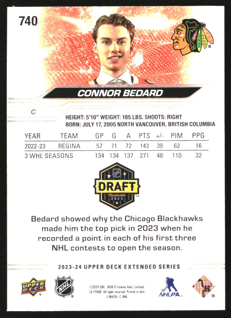 2023-24 Upper Deck #740 Connor Bedard RC Rookie