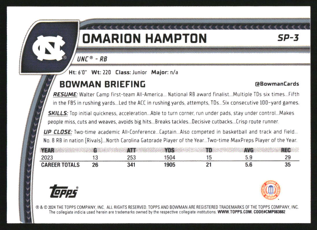 2024 Bowman Chrome University Image Variations #SP3 Omarion Hampton RC Rookie