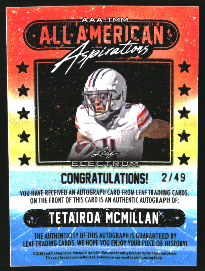 2024 Leaf All American AAspirations Autograph Tetairoa McMillan Auto /49