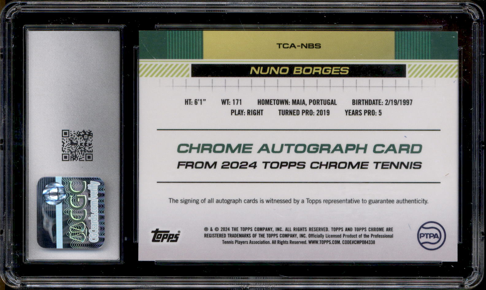 2024 Topps Chrome Sapphire Autograph Purple Nuno Borges Auto /10 CGC 10