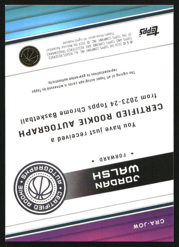 2023-24 Topps Chrome Sapphire Rookie Auto Orange Refractors Jordan Walsh RC /25