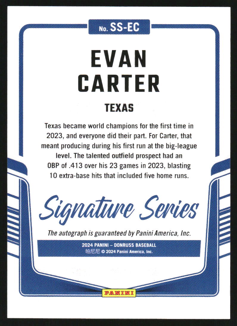 2024 Donruss Signature Series Laser Evan Carter Rookie Autograph RC Auto