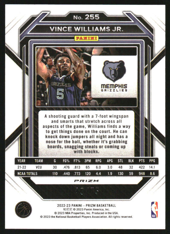 2022-23 Panini Prizm Prizms Fast Break Purple #255 Vince Williams Jr. RC /75