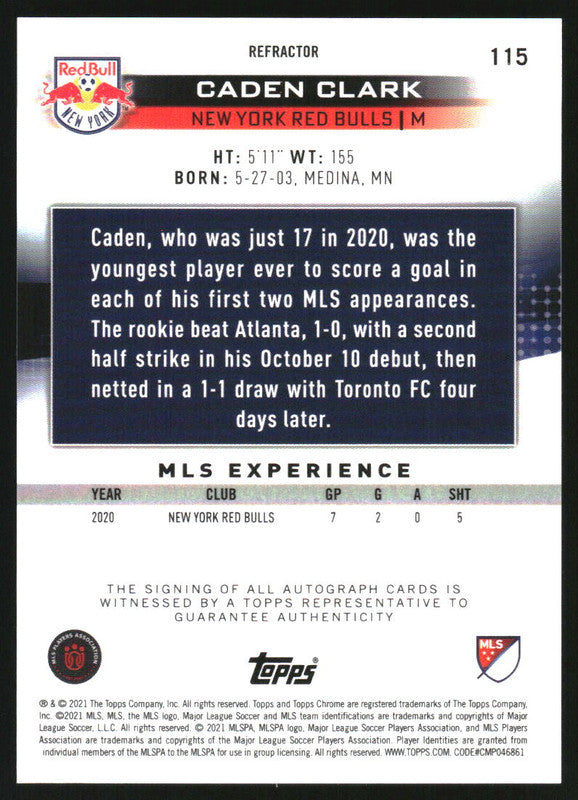 2021 Topps Chrome MLS Rookie Autograph #115 Caden Clark RC Auto