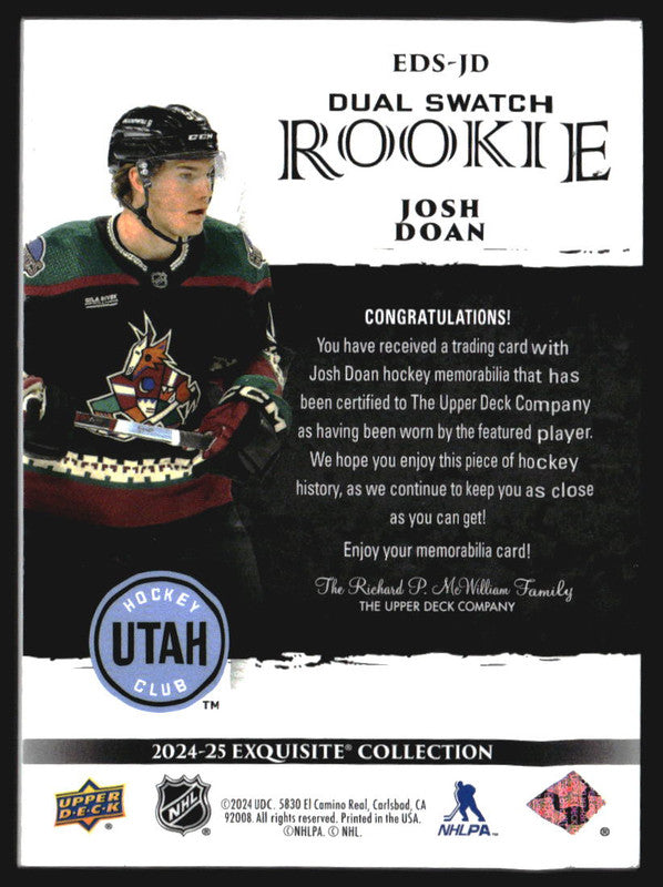 2024-25 Exquisite Collection Dual Swatch Rookies #EDSJD Josh Doan RC /75