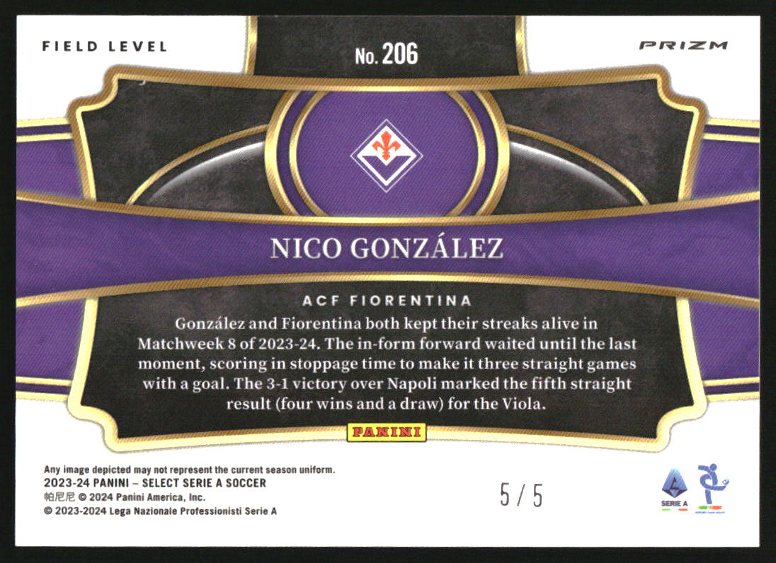 2023-24 Select Serie A Green #206 Nico Gonzalez /5