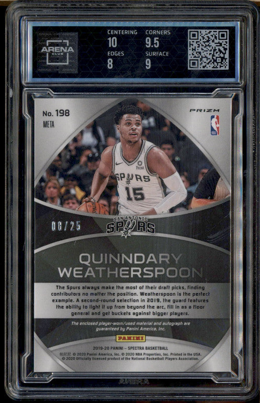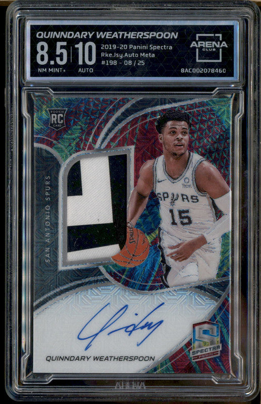 2019 Spectra Rookie Jersey Auto Meta Quinndary Weatherspoon RC /25 Arena 8.5