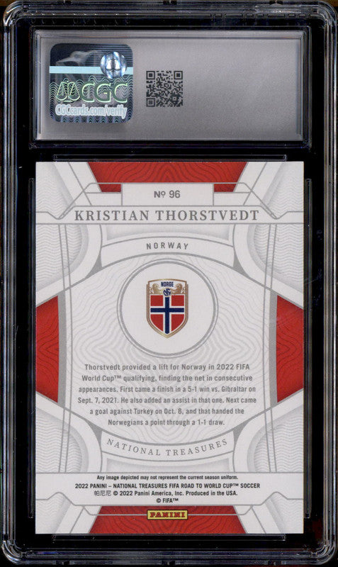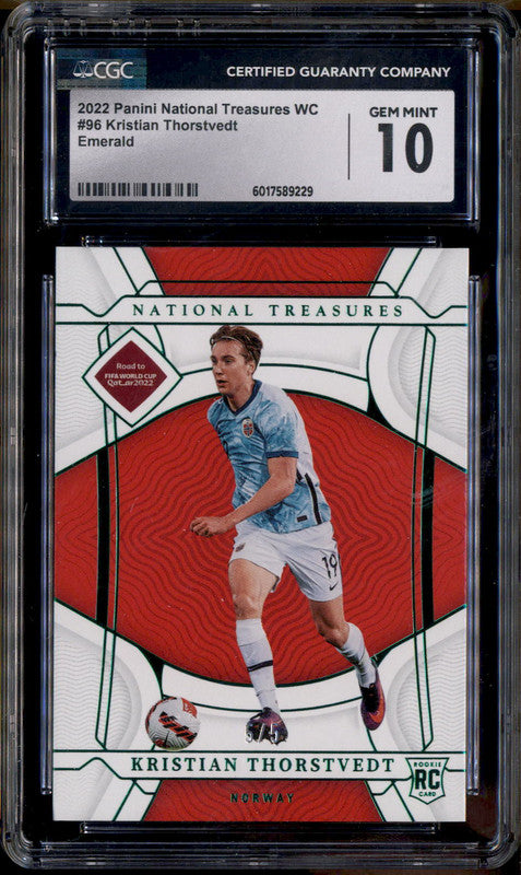 2022 National Treasures World Cup Emerald #96 Kristian Thorstvedt RC /5 CGC 10