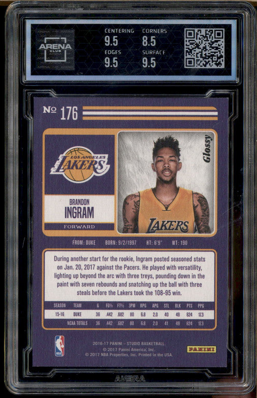 2016-17 Panini Studio Glossy #176 Brandon Ingram RC Rookie Arena Club 9