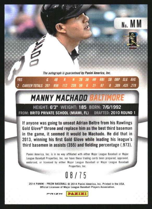 2014 Panini Prizm Autographs Prizms Mojo #MM Manny Machado Auto /75