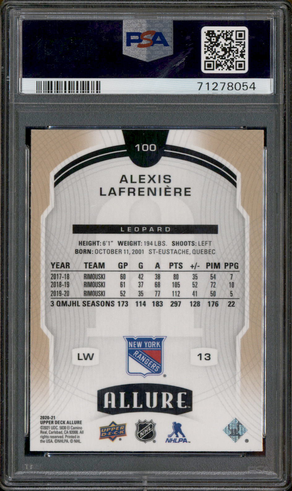 2020 Upper Deck Allure Leopard #100 Alexis Lafreniere RC Rookie PSA 9