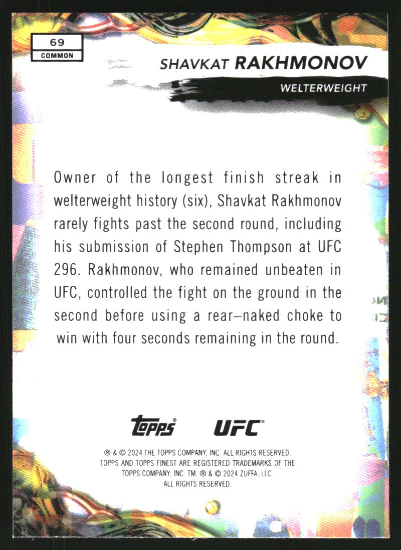 2024 Finest UFC Gold Refractors #69 Shavkat Rakhmonov /50