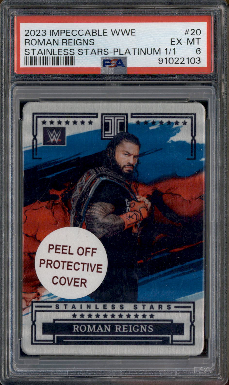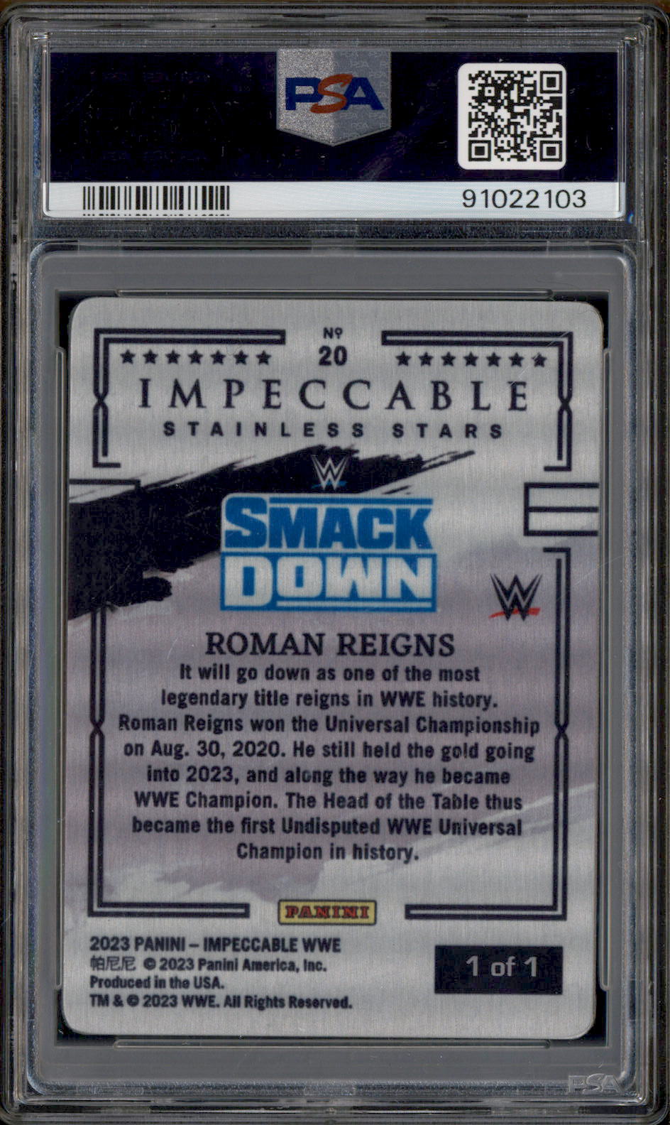 2023 Panini Impeccable WWE Stainless Stars Platinum #20 Roman Reigns 1/1 PSA 6