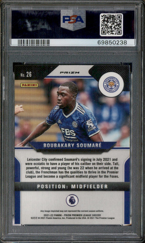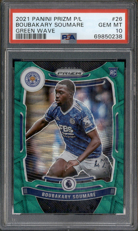 2021 Panini Prizm Premier League Green Wave Boubakary Soumare RC PSA 10