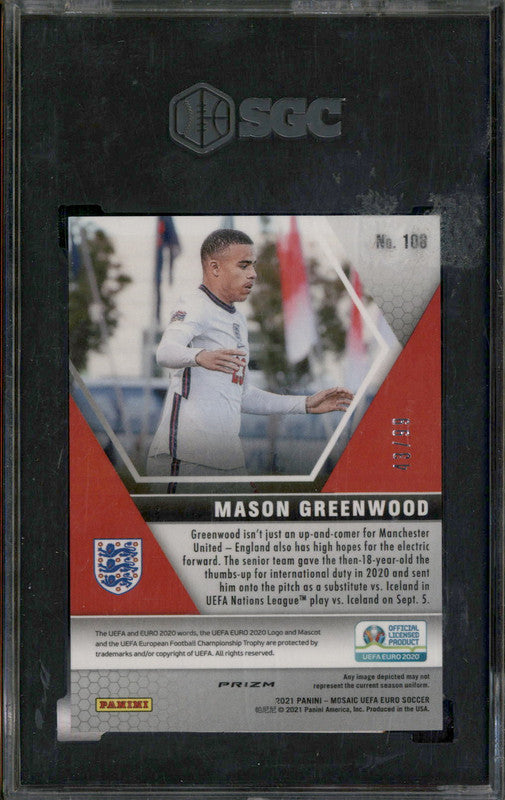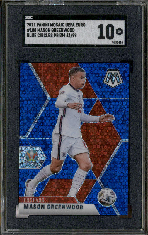 2021 Panini Mosaic UEFA Blue Circles #108 Mason Greenwood /99 SGC 10
