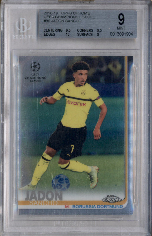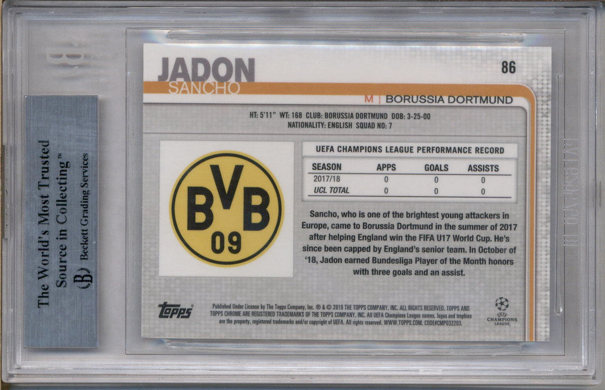 2018 Topps Chrome UEFA Champions League #86 Jadon Sancho BGS 9