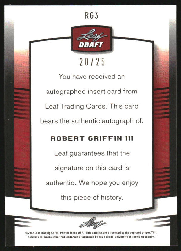 2012 Leaf Metal Draft Prismatic Purple #RG3 Robert Griffin III RC Auto /25