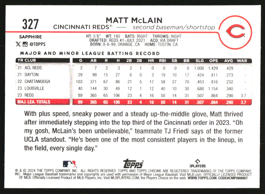 2024 Topps Chrome Sapphire Chrome Gold Refractor #327 Matt McLain