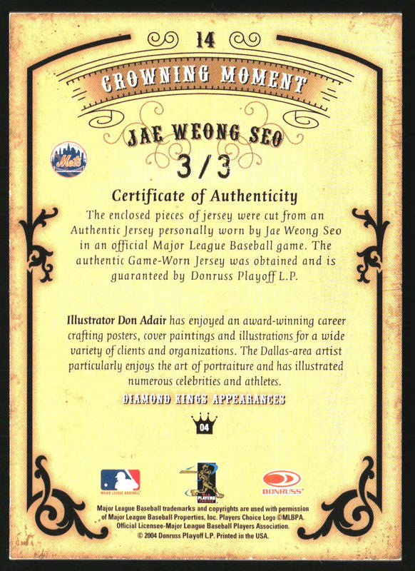 2004 Donruss Diamond Kings DK Combos Gold #14 Jae Weong Seo Auto /3