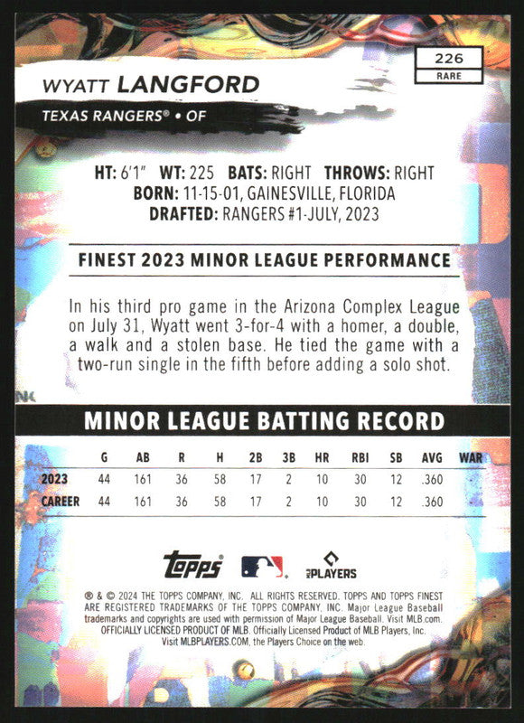 2024 Topps Finest Blue Refractor #226 Wyatt Langford RC /99