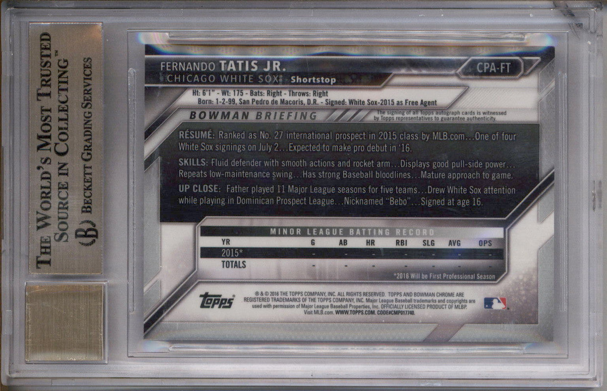 2016 Bowman Chrome Prospect Autographs #CPAFT Fernando Tatis Jr. RC Auto BGS 9.5