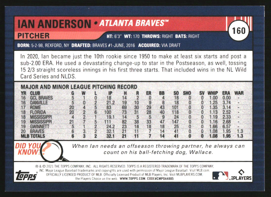 2021 Topps Big League Red Foil #160 Ian Anderson RC 1/1