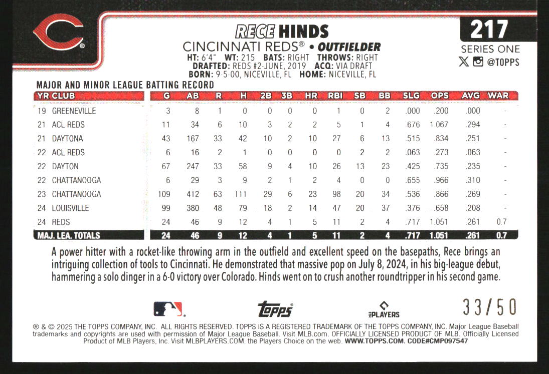 2025 Topps Holiday Flowers #217 Rece Hinds RC /50