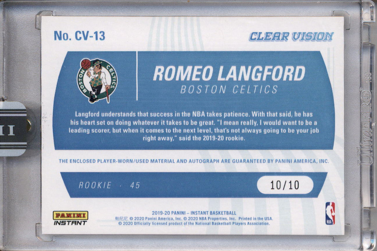 2019-20 Panini Instant Clear Vision #CV-13 Romeo Langford RC Auto /10