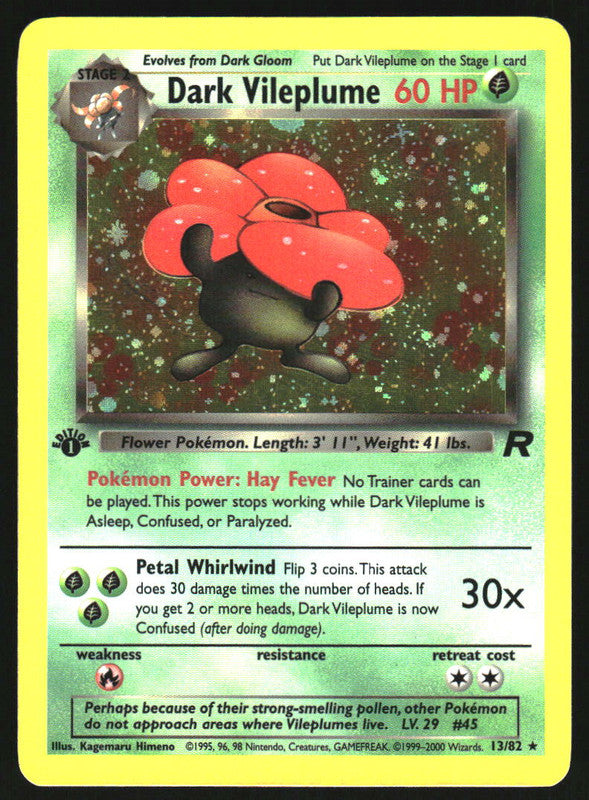 2000 Pokemon Team Rocket First Edition #13 Dark Vileplume Holo-NM