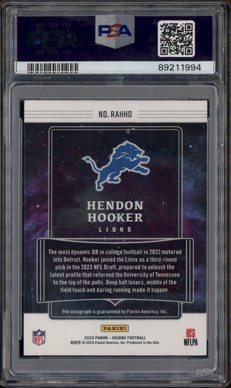 2023 Panini Origins Rookie Autograph Gold #RAHHO Hendon Hooker RC Auto /10 PSA 8