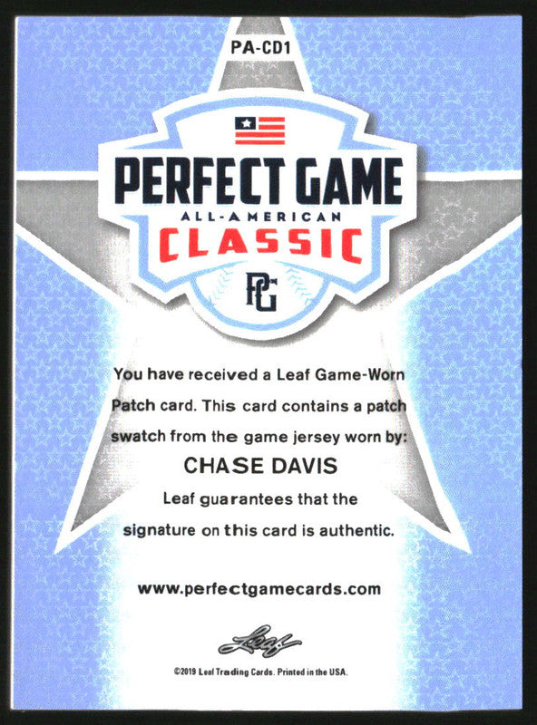 2019 Leaf Metal Perfect Game All-American Auto Pink Chase Davis /8