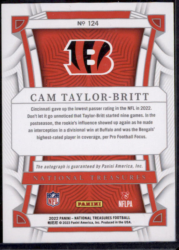 2022 Panini National Treasures Gold #124 Cam Taylor-Britt RC Auto /10