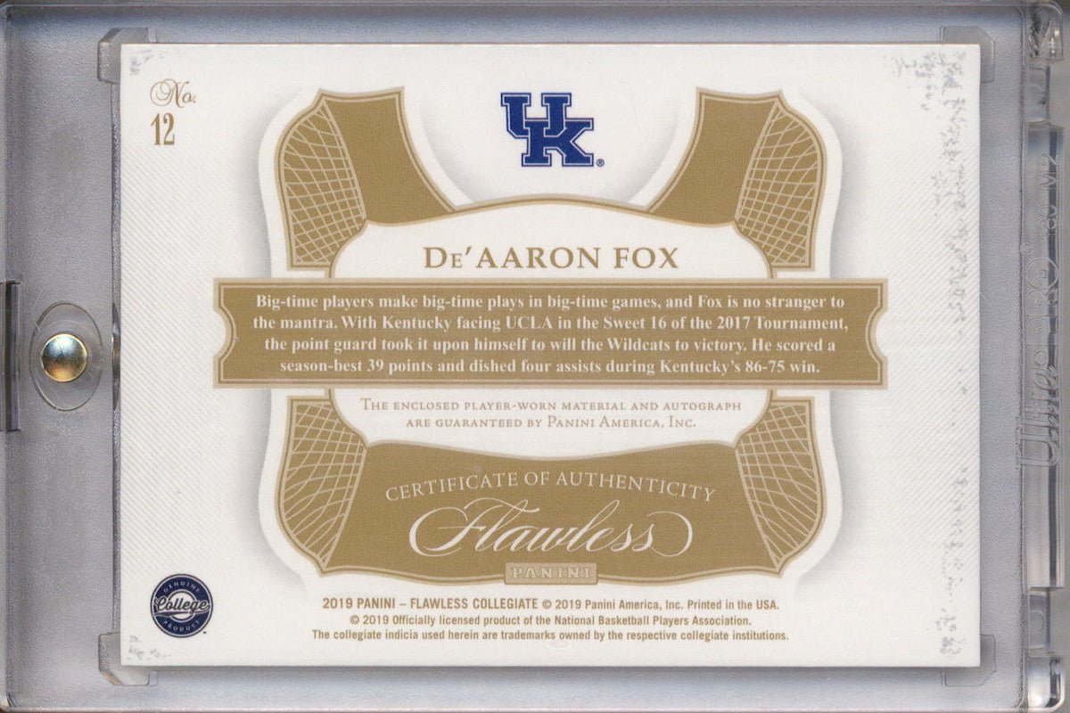 2019 Flawless Collegiate Star Swatch Signatures Black #12 De Aaron Fox Auto 1/1