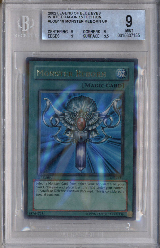 2022 Yu-Gi-Oh Legend of Blue Eyes White Dragon Monster Reborn 1st Edition BGS 9