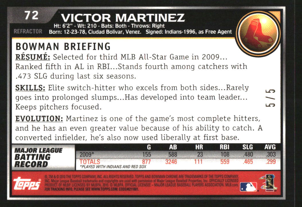 2010 Bowman Chrome Red Refractors #72 Victor Martinez /5