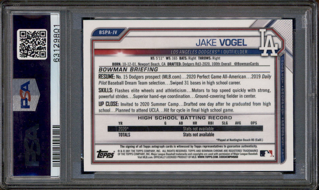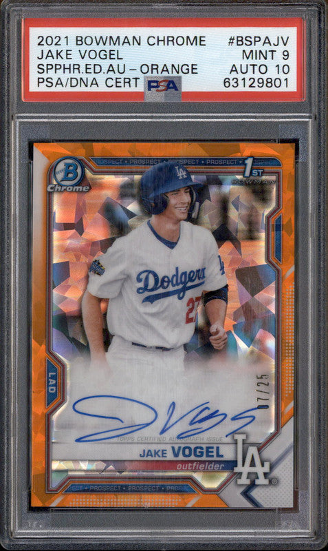 2021 Bowman Chrome Sapphire Edition Auto Orange #BSPAJV Jake Vogel RC /25 PSA 9