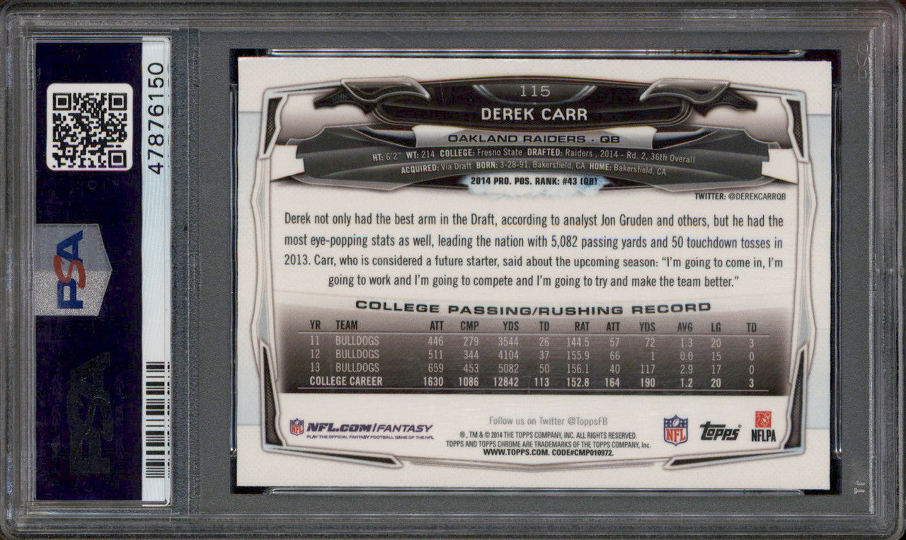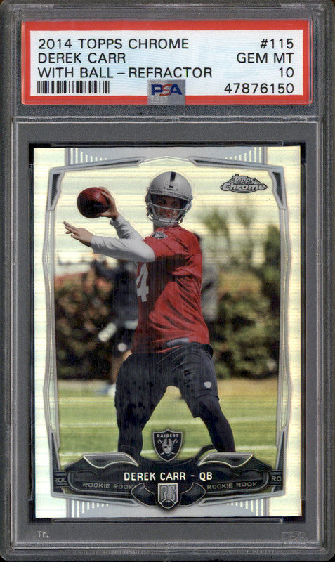 2014 Topps Chrome Refractor With Ball #115 Derek Carr RC PSA 10