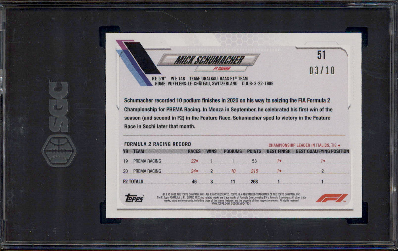 2020 Topps F1 Black #51 Mick Schumacher RC Rookie /10 SGC 9