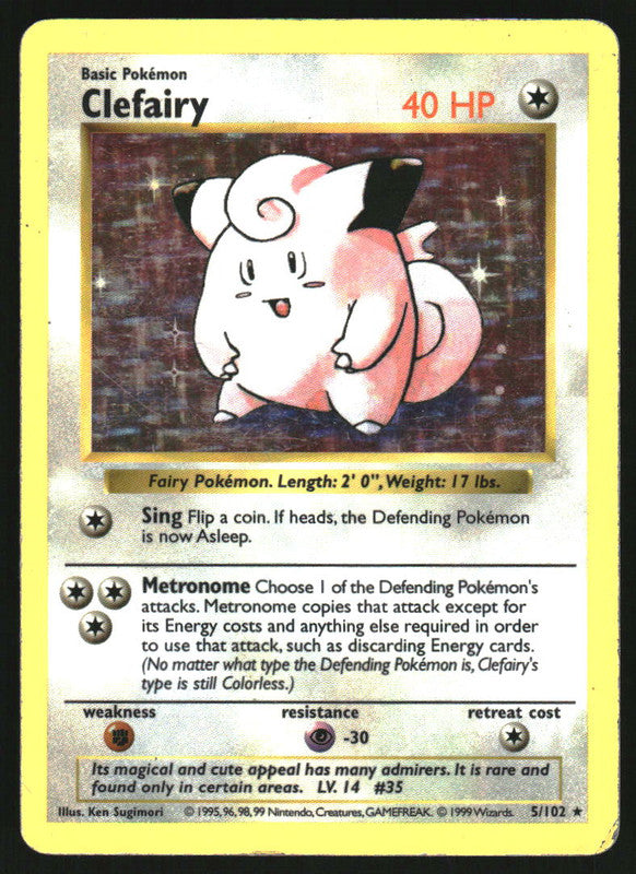 1999 Pokemon Set Shadowless #5/102 Clefairy Holo