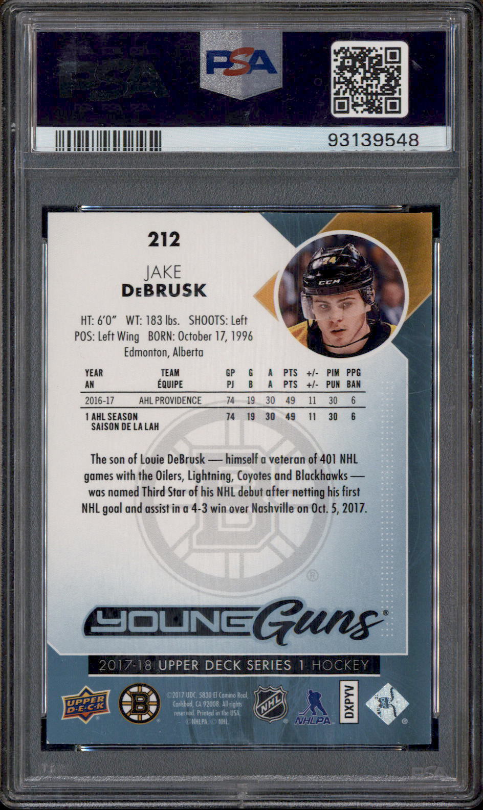 2017 Upper Deck #212 Jake DeBrusk Young Guns RC Rookie PSA 9