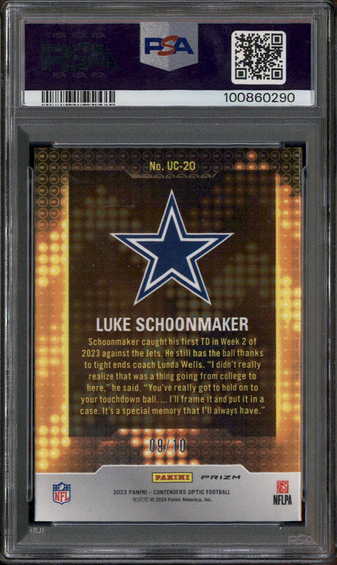 2023 Contenders Optic Up And Coming Gold #UC20 Luke Schoonmaker RC /10 PSA 10