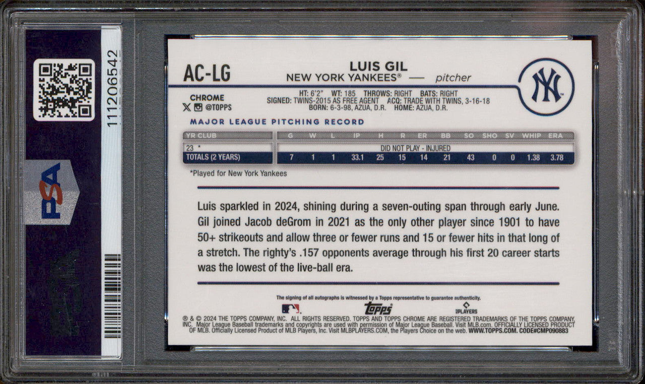 2024 Topps Chrome Update Auto Green Refractor #ACLG Luis Gil /99 PSA 9